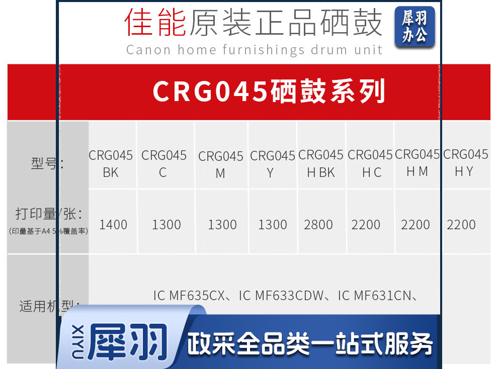 佳能CRG-045 适用MF635Cx/MF633Cdw/MF631Cn/LBP613Cd CRG-045 标准四色一套-