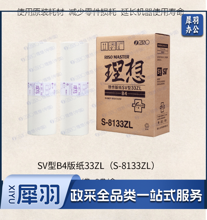 理想 SV型B4版纸33ZL(S-8133ZL)适用于:SV租赁机B4型 一盒装 每盒2卷
