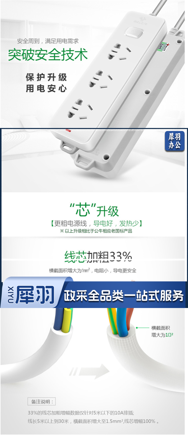 公牛 GN-212 插排/接线板 3位总控 全长1.8米