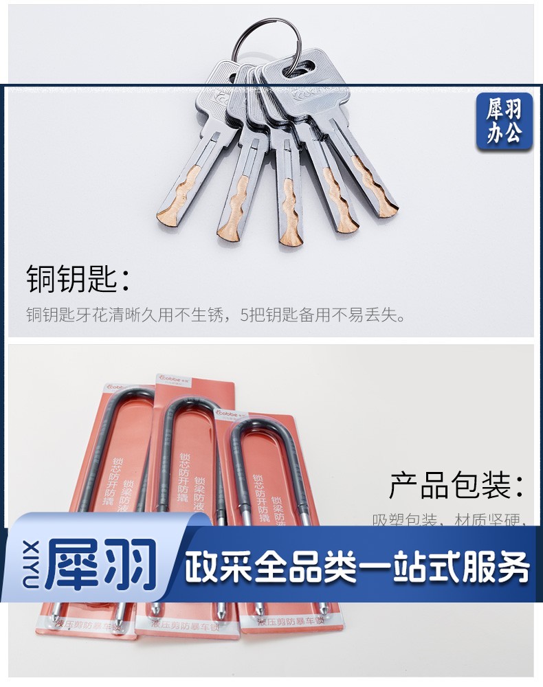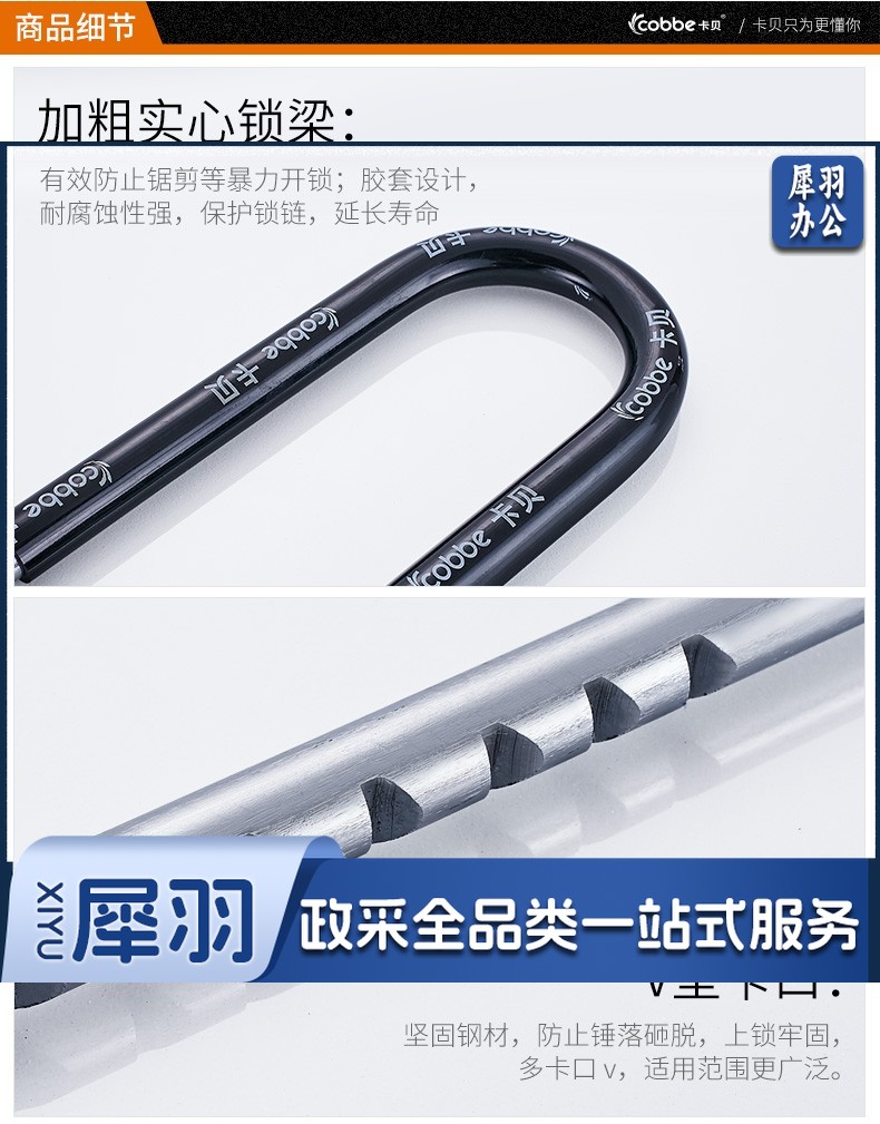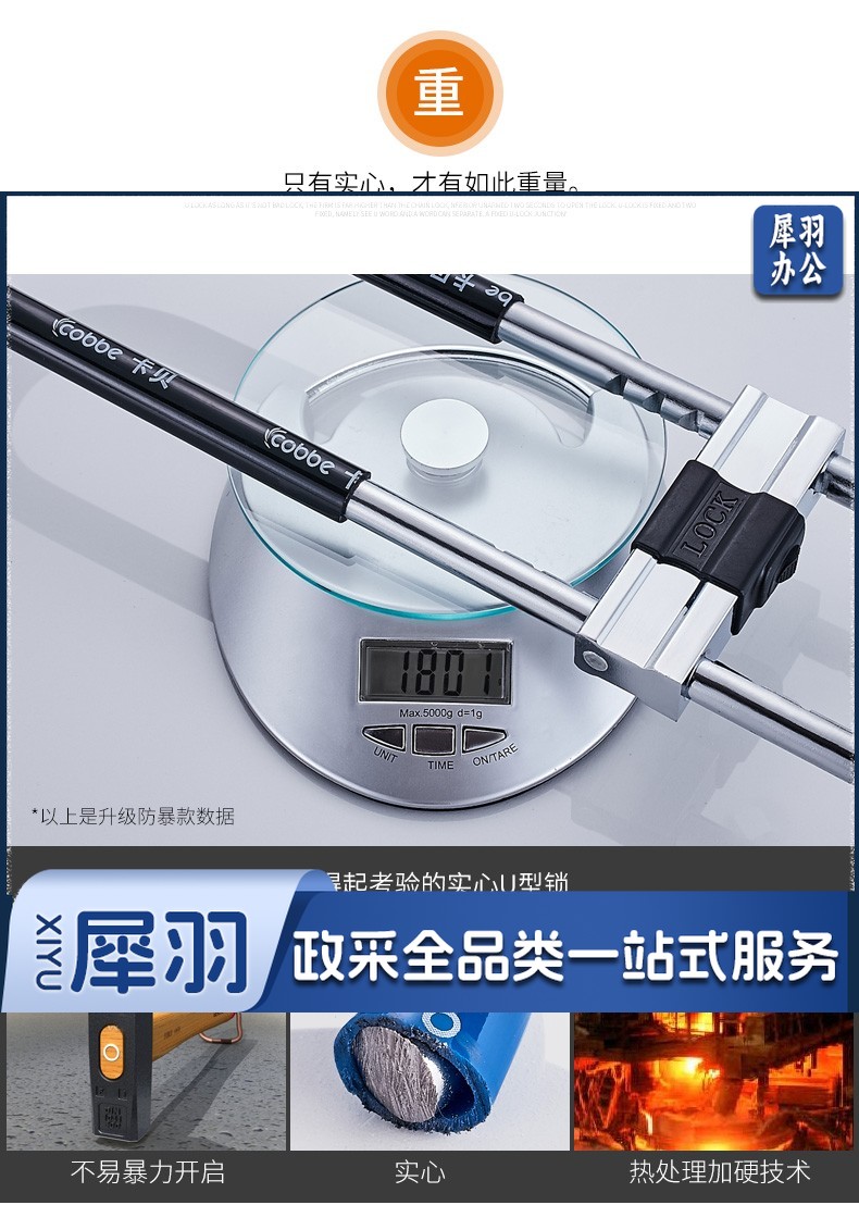卡贝U型锁防盗安全锁 双开玻璃门锁抗剪防撬办公室商铺室外 摩托车u形锁锁具升级款黑色-300mm