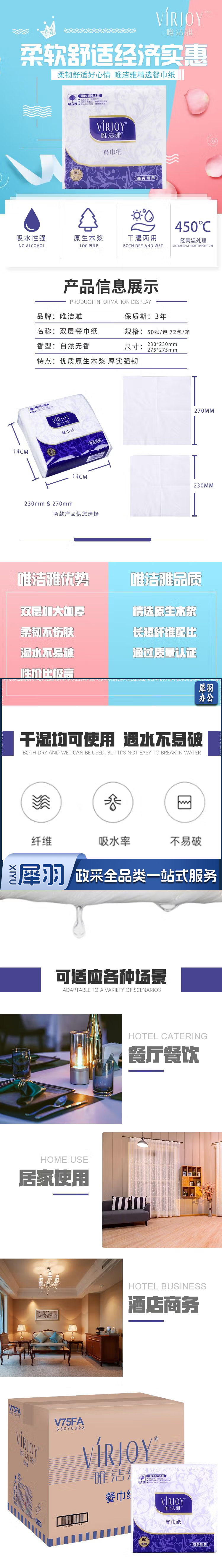 唯洁雅 餐巾纸 E706A 双层餐巾纸50片/包*72包 230mm*230m
