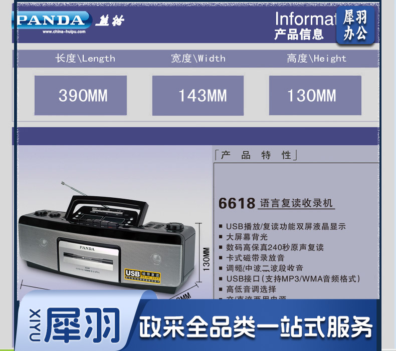 熊猫(PANDA) 6618台式复读机英语磁带录音机收录机学习机USB播放器
