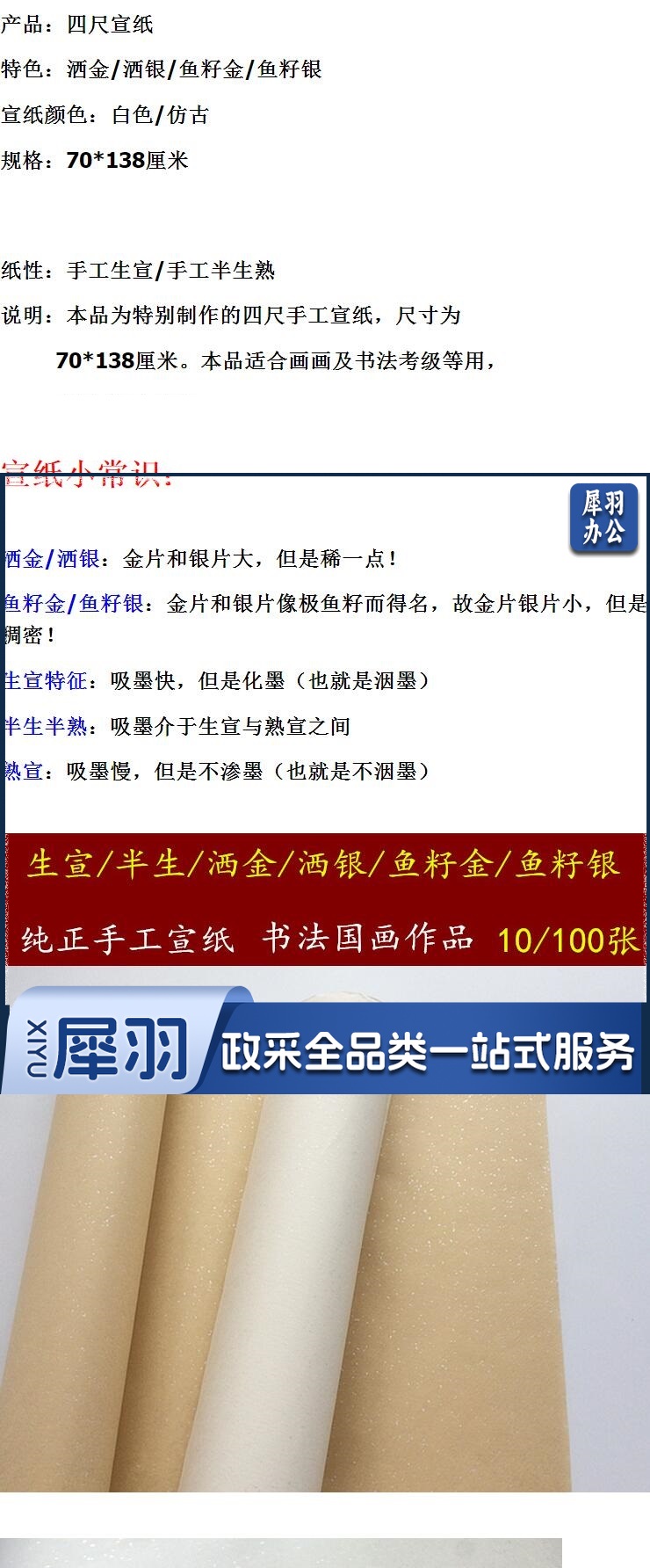 手工四尺半生熟宣纸 白色鱼籽银仿古宣纸 100张/刀 货号:JC