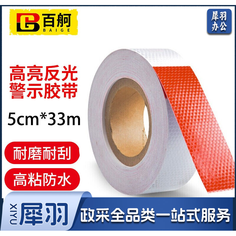 百舸反光警示胶带安全定位反光贴膜双色斑马斜纹反光条警戒线胶带汽车库反光防撞地贴胶带 红白宽5cm*33米