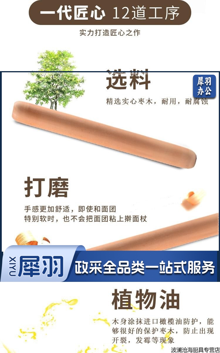 擀面杖 家用饺子皮压面棒 长50cm