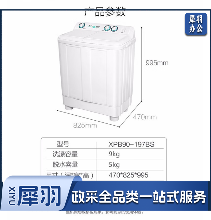 海尔(Haier) 洗衣机家用半自动双缸9公斤双电机喷淋漂洗洗衣机XPB90-197BS