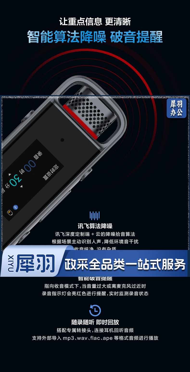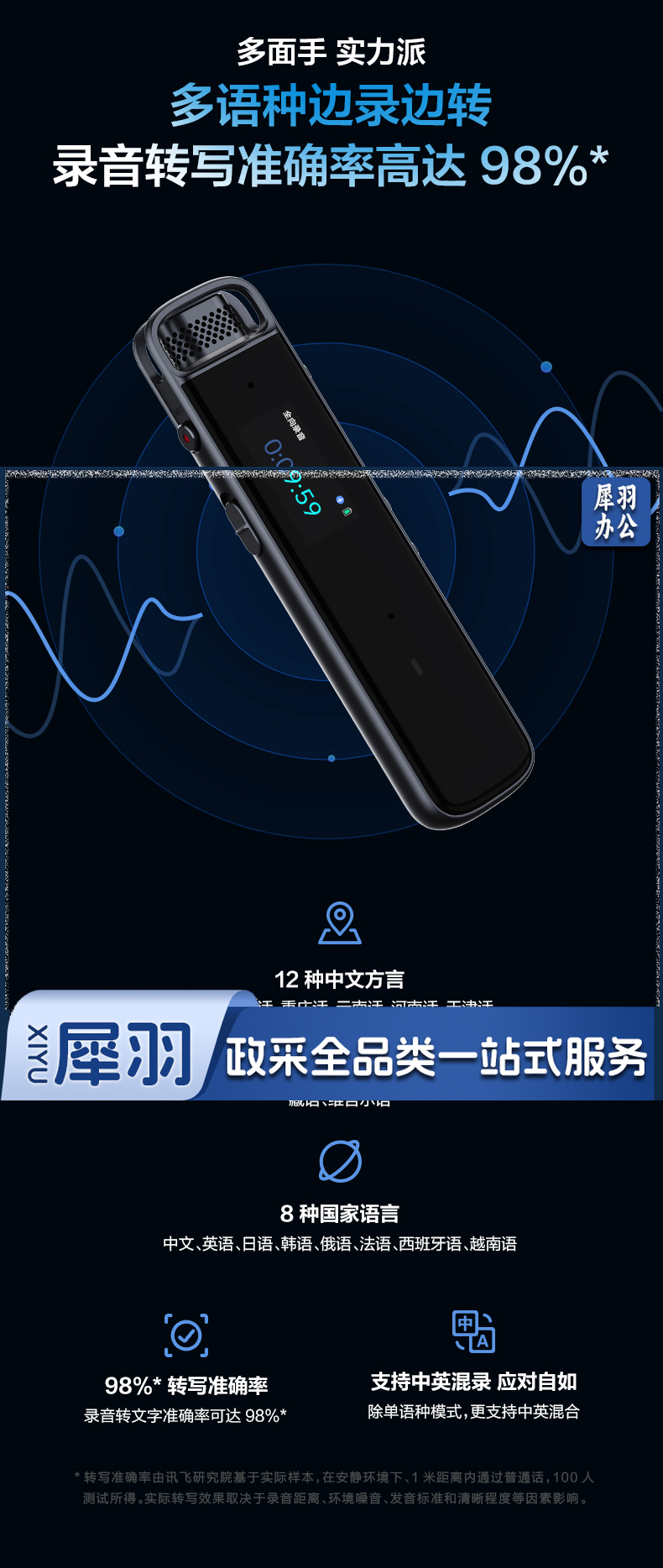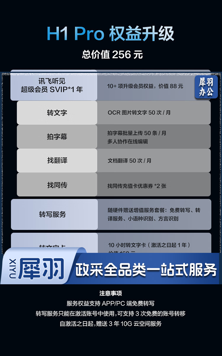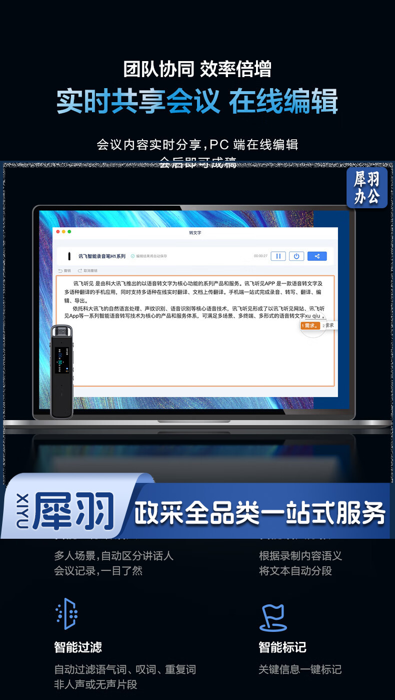 科大讯飞智能录音笔H1 Pro 转写助手 32G 专业高清降噪 会议录音转文字 录音笔 实时翻译