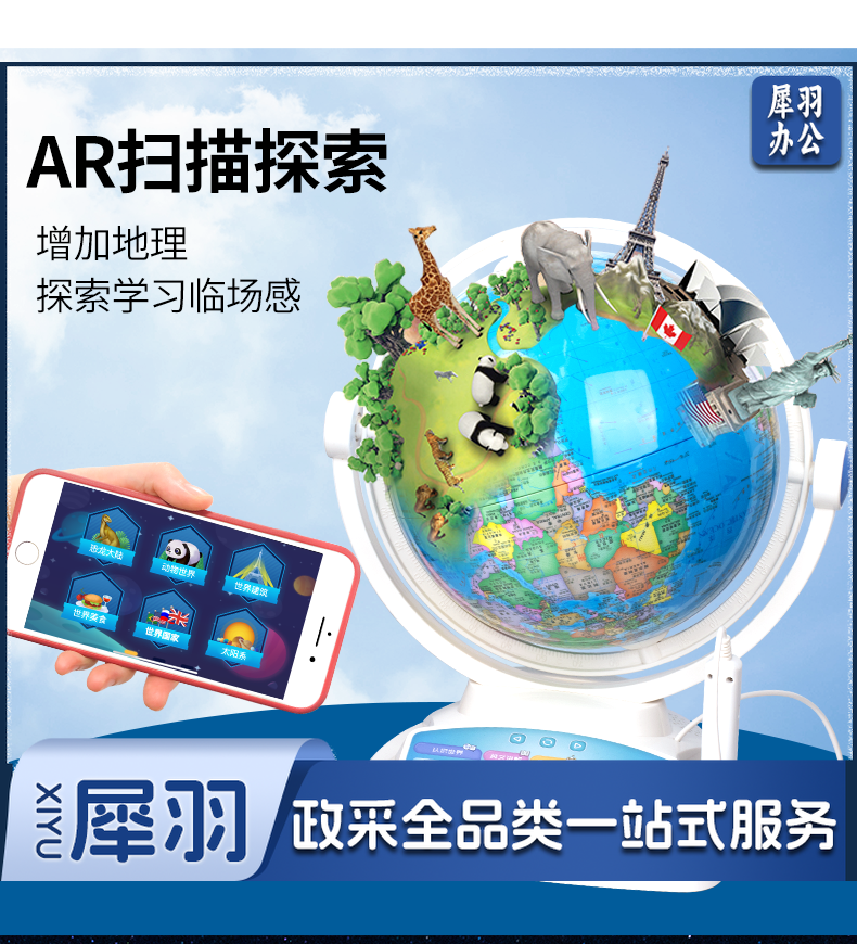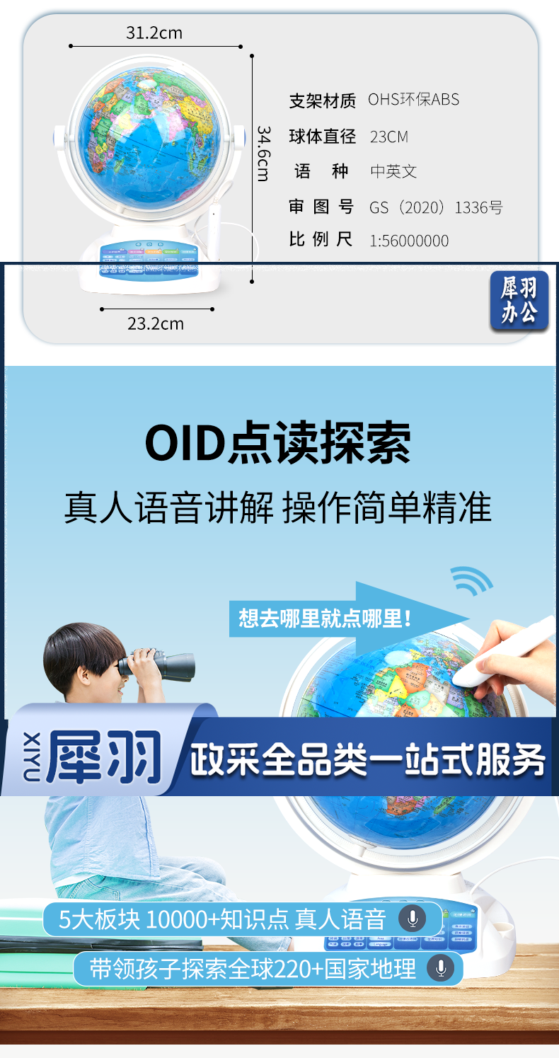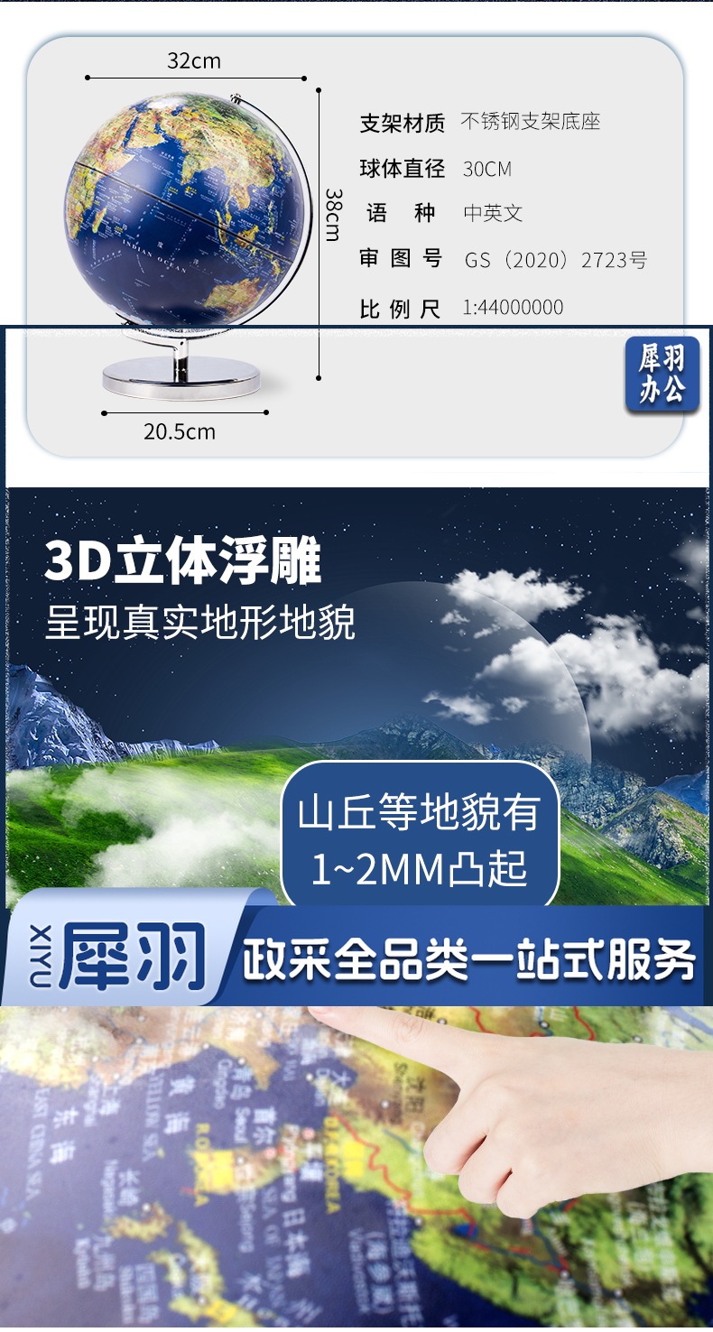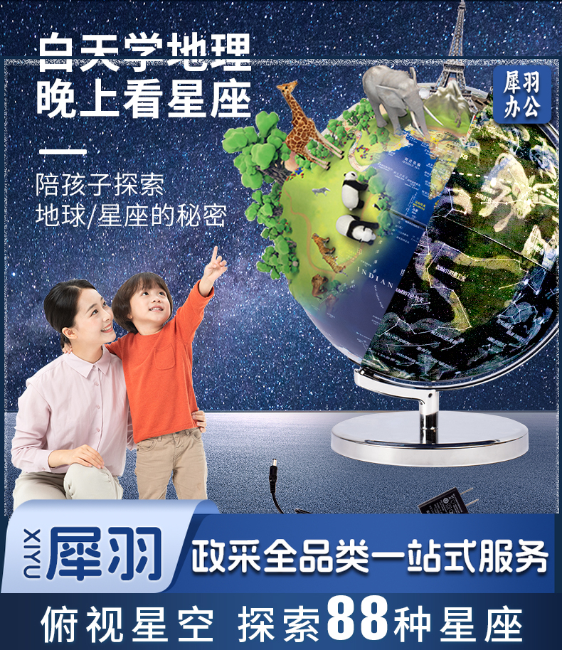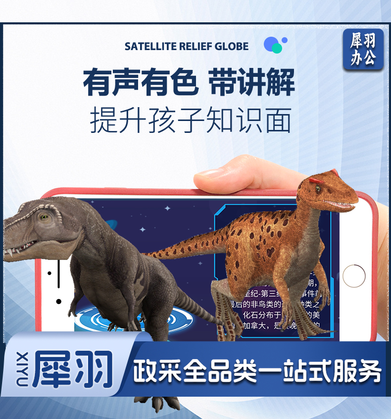 Touch Fish学生地球仪 立体浮雕高清智能AR语音点读LED带灯夜光星座 中英文对照教学摆件 点读地球仪