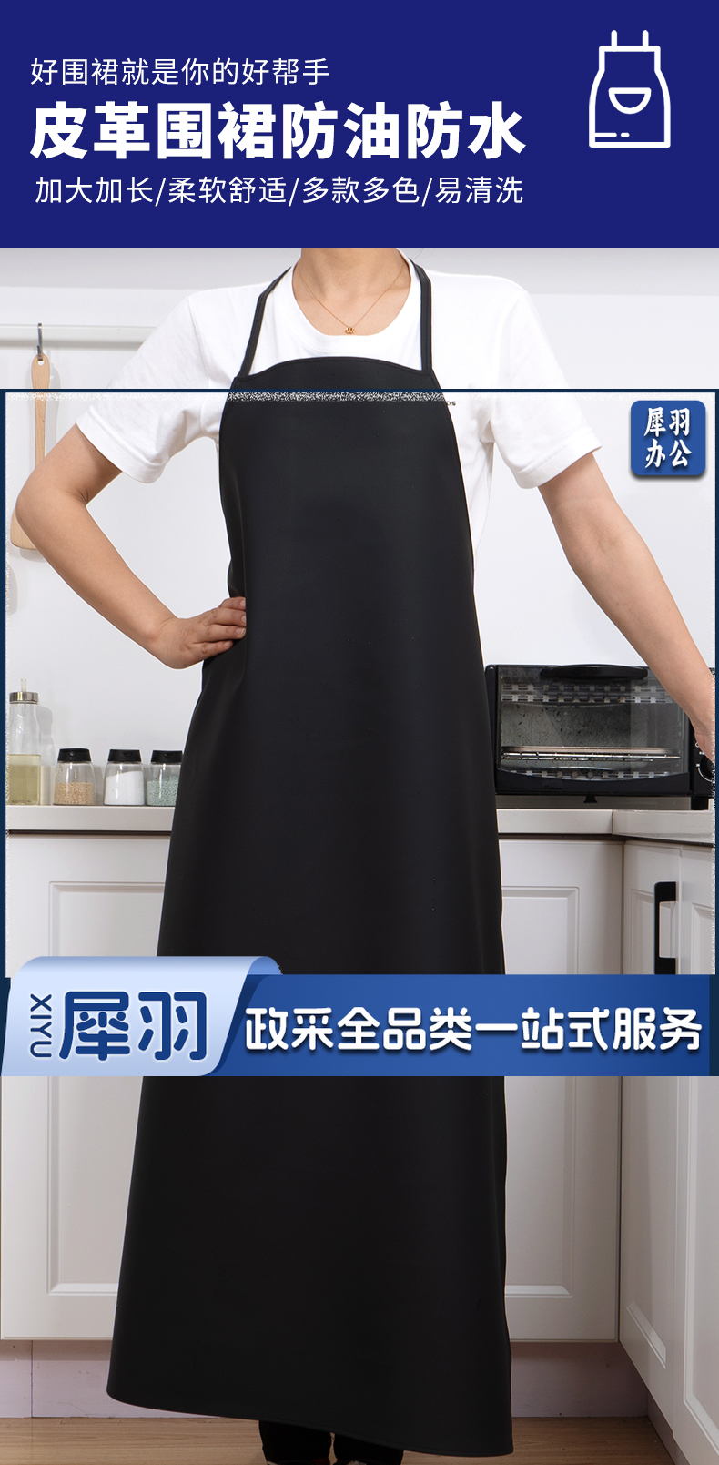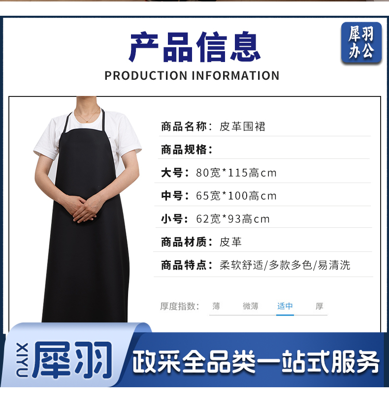 大号 黑色皮革防水围裙 防水防油耐酸碱黑色围裙 PVC劳保围裙皮罩衣 单位:条