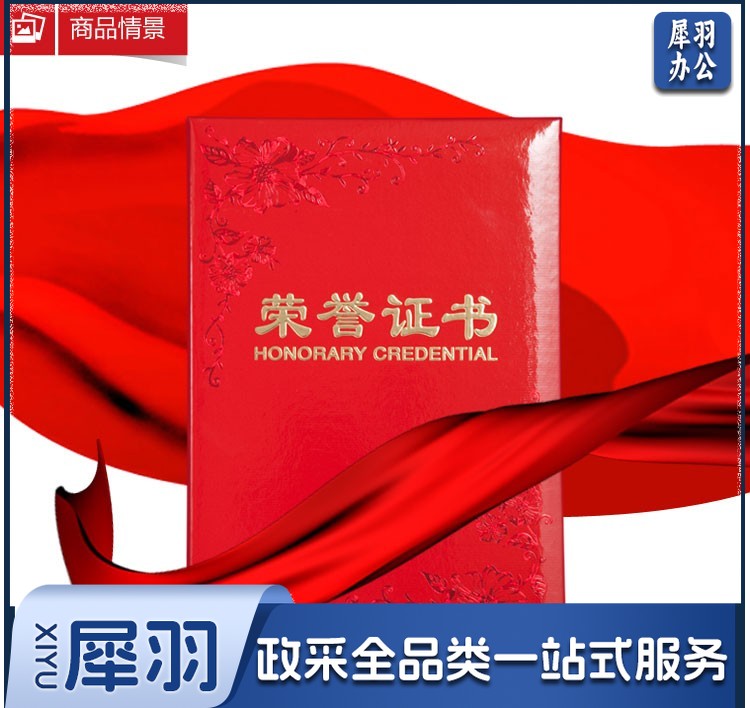 齐心(Comix) 纸面荣誉证书 纸面花纹荣誉证书 8K/12K 奖状大红色 办公文具 C4592 荣誉证书 纸面 16K 红