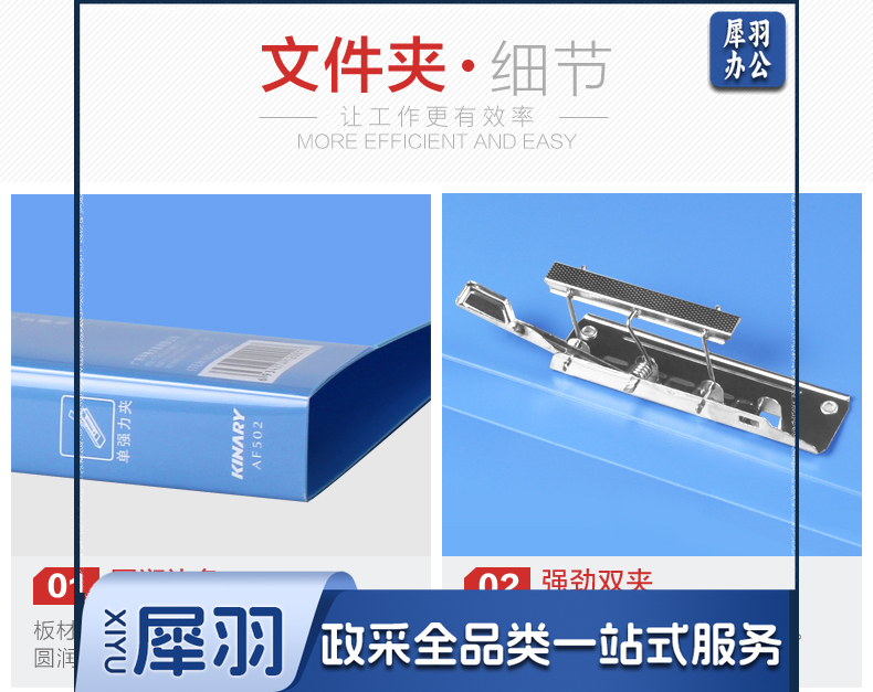 1100008278EA 金得利 AF505 双强力夹 A4 双强力夹 蓝色