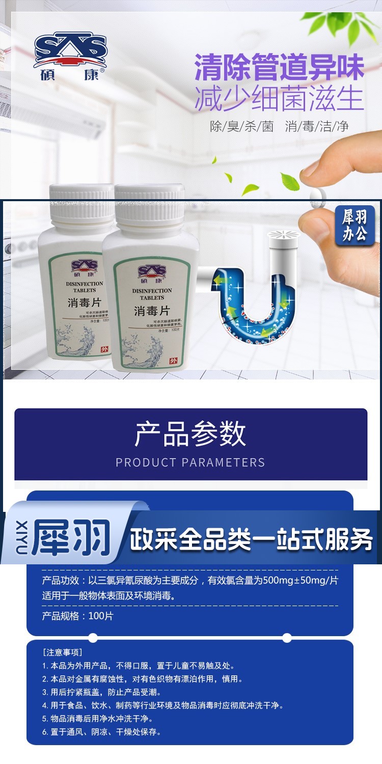 硕康 消毒片100片装 三氯异氰尿酸消毒片泡腾片 80瓶/箱
