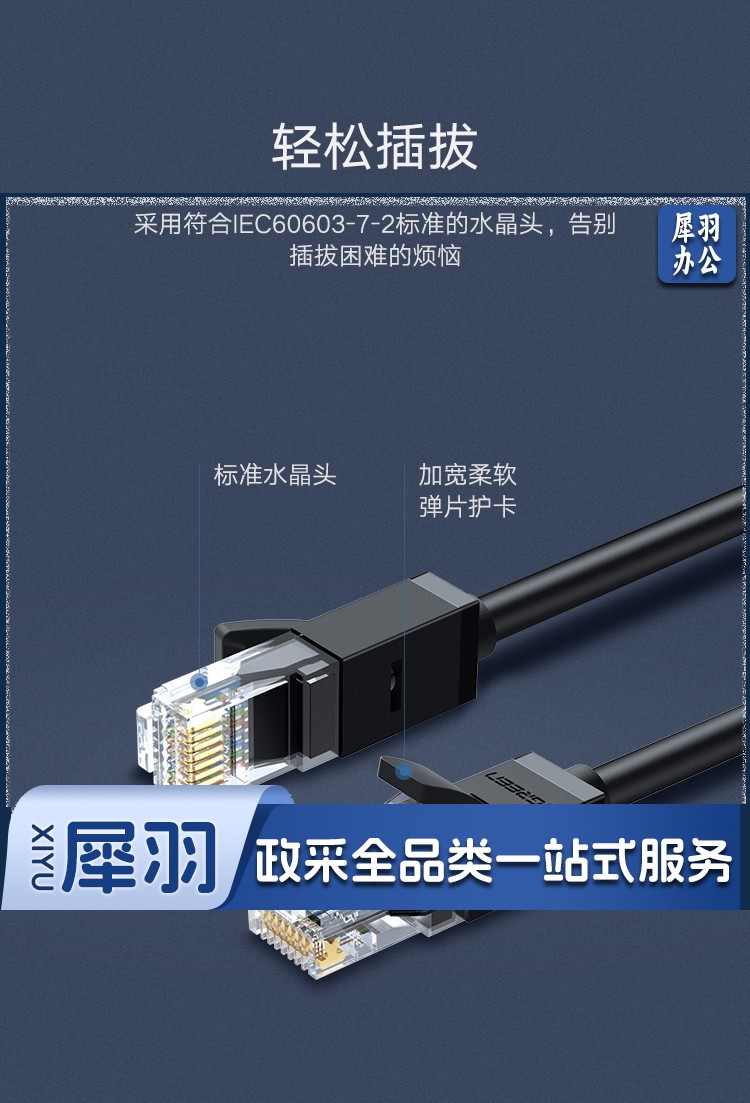 绿联 六类网线 CAT6类千兆八芯双绞非屏蔽跳线8芯 电脑宽带家用工程装修成品监控网络连接线 黑色2米