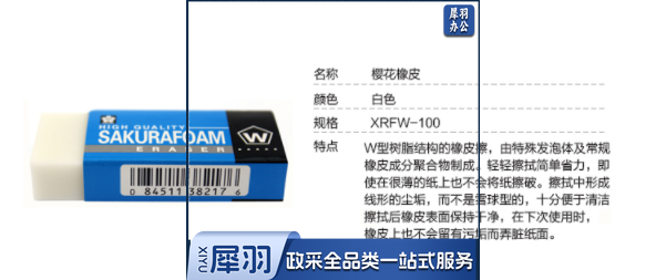 日本樱花(SAKURA)橡皮擦学生考试美术绘图 XRFW-100中号单块