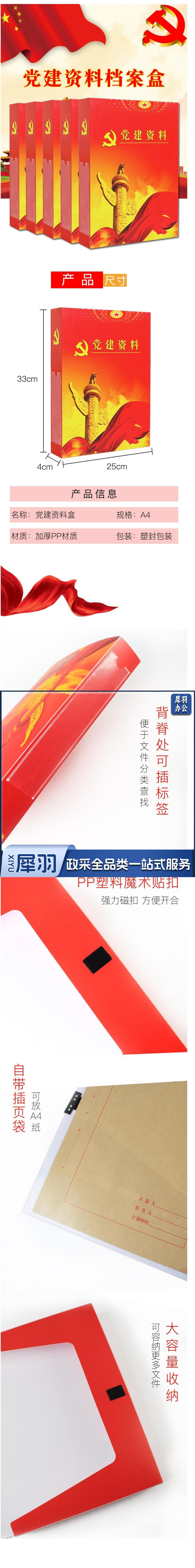 党建档案盒 红色塑料党建文件盒 33*25CM 侧宽40mm 加厚塑料文件资料盒