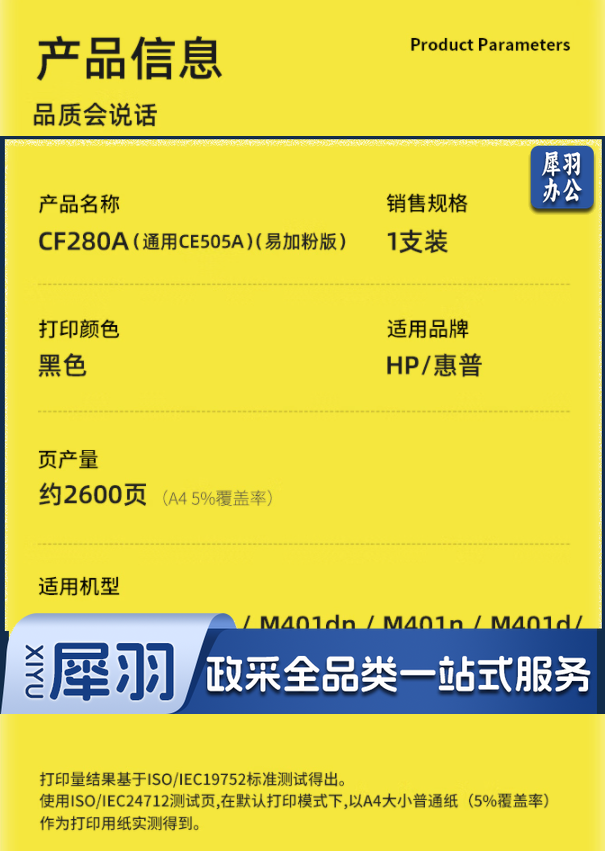 科思特 K CF280A 易加粉硒鼓 黑色(适用HP LaserJet 400/M401dn/M401n/M401d/M425dw/M425dn)2600页 专业版