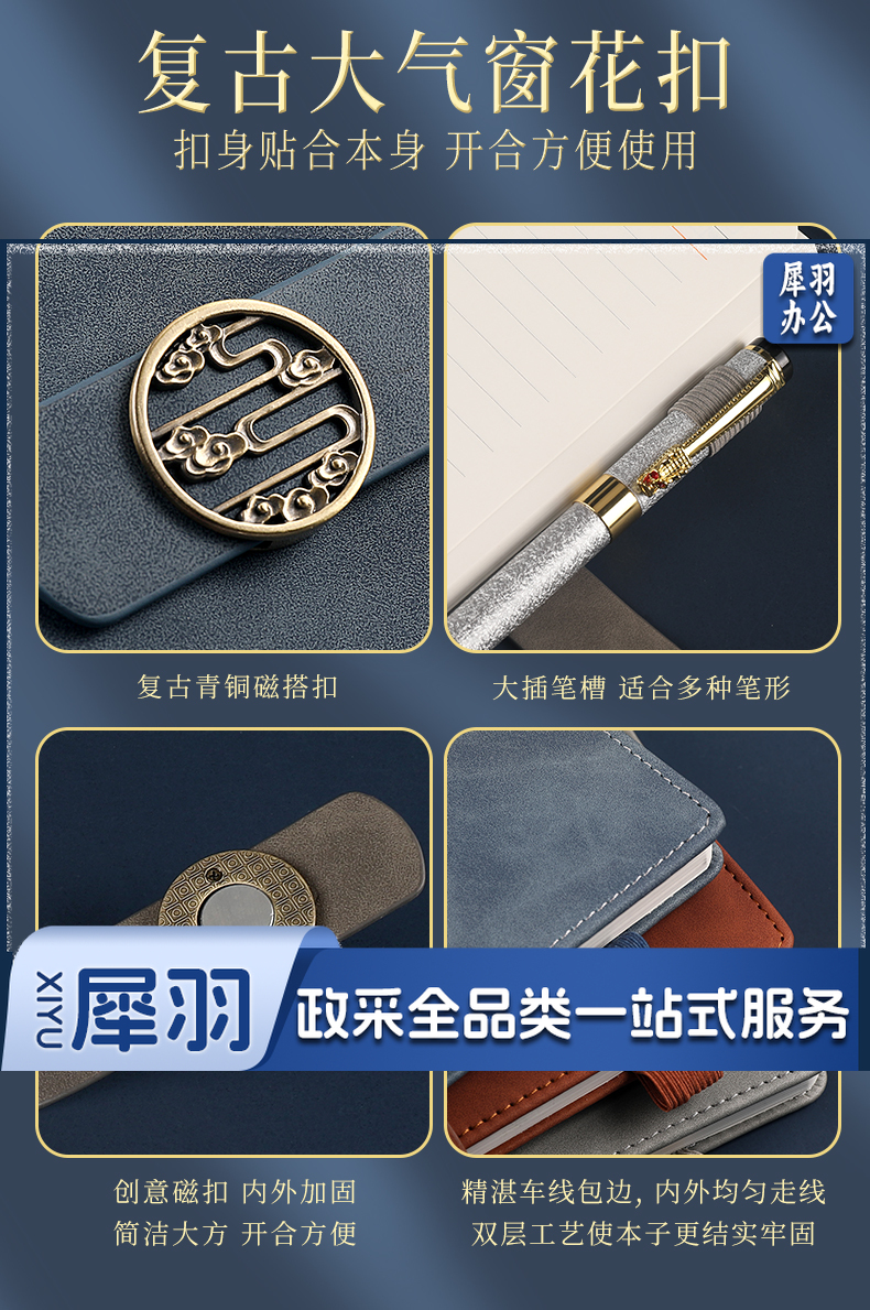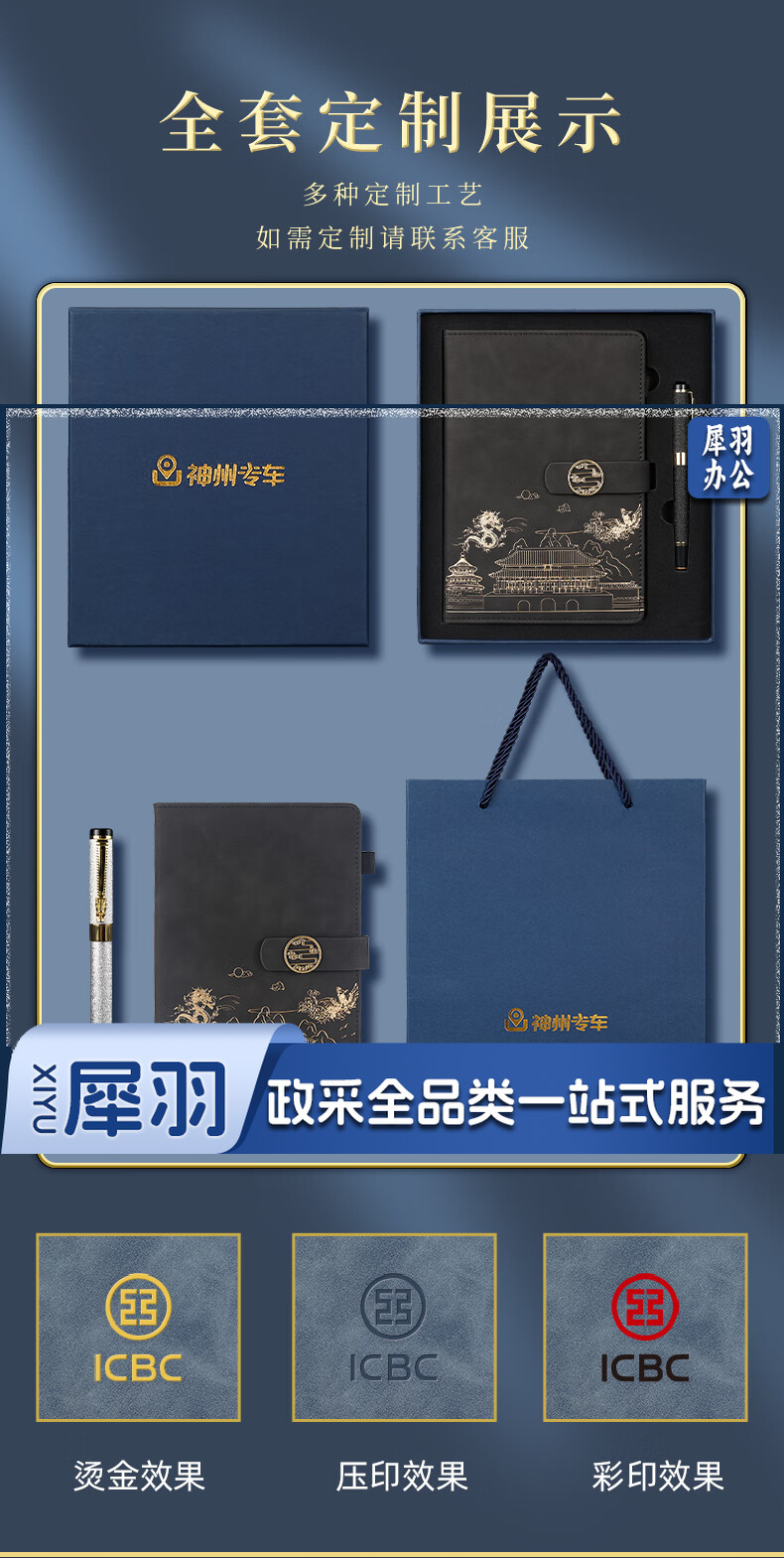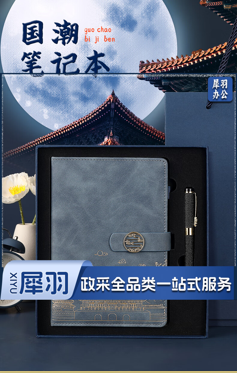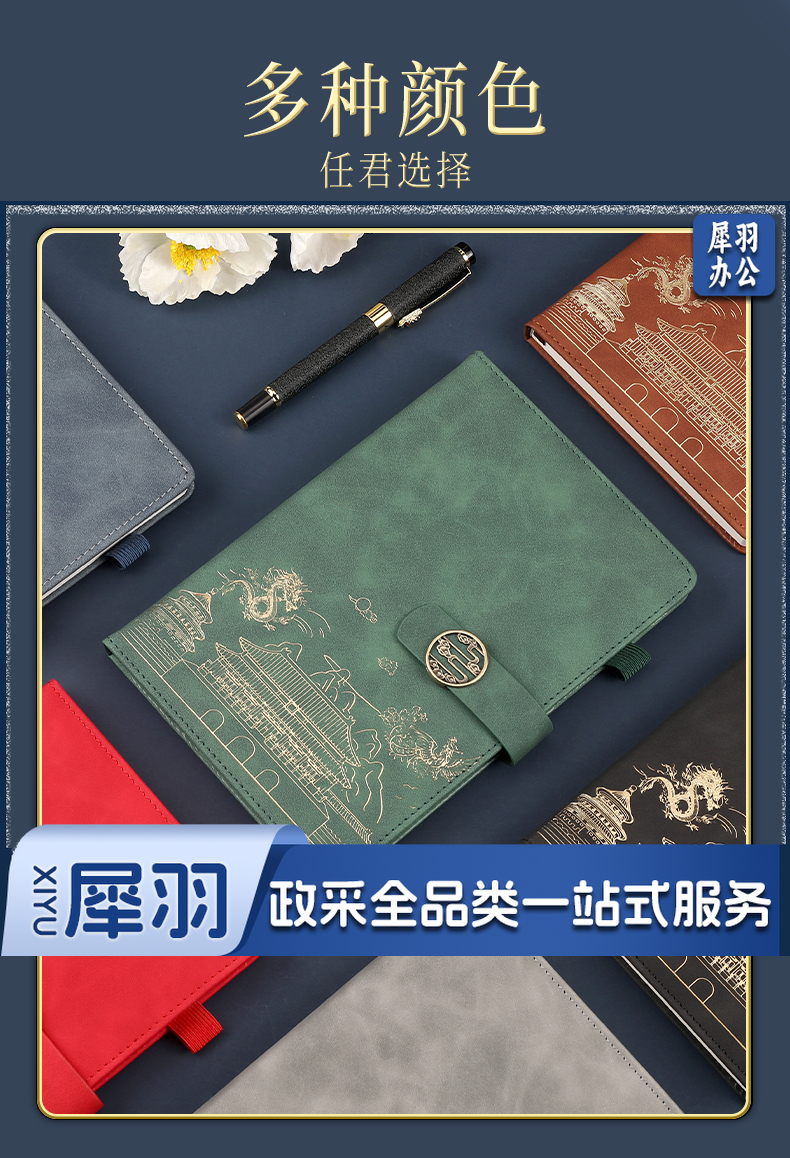 可定制国潮故宫高颜值笔记本本子精美礼品套装记事本a5文具礼盒刻字商务伴手礼 龙凤呈祥套装(绿色