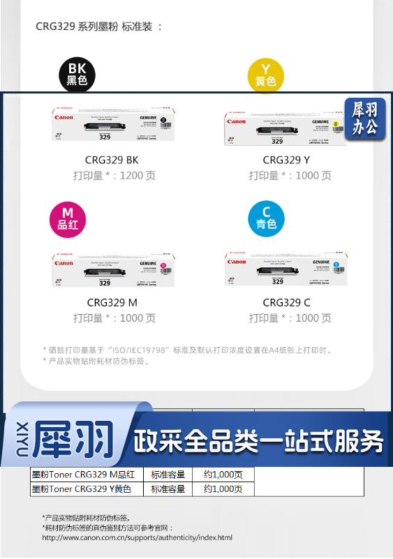 佳能(Canon)CRG329Y 黄色硒鼓粉盒(适用于LBP7010C/LBP7018C)