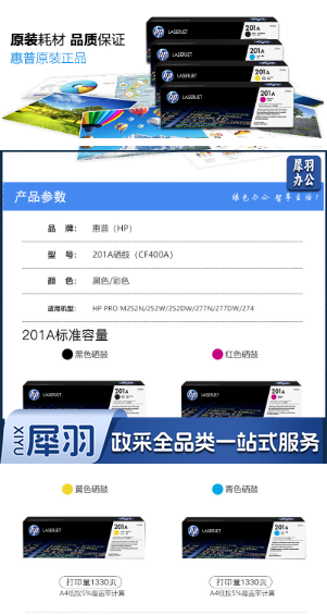 惠普HP CF400A/201A 原装硒鼓 黑色(适用HP Color Laser Jet Pro M252/ MFP M277系列/ M274n)(适用惠普M252/M252N/M252DN/M277n/M27DW )