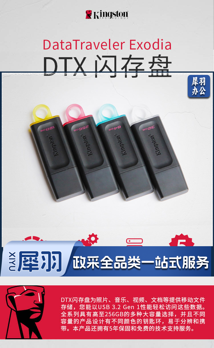 金士顿 DTX/32G USB3.2 U盘 黑白色
