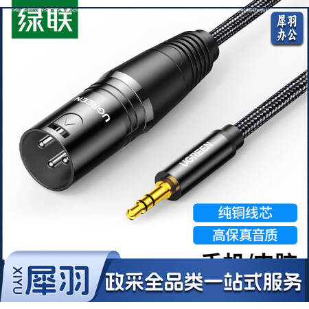 绿联15238 3.5mm转卡侬公头音频线公对公连接线 手机电脑接音响功放调音台转接线 3.5公转卡农公头1米