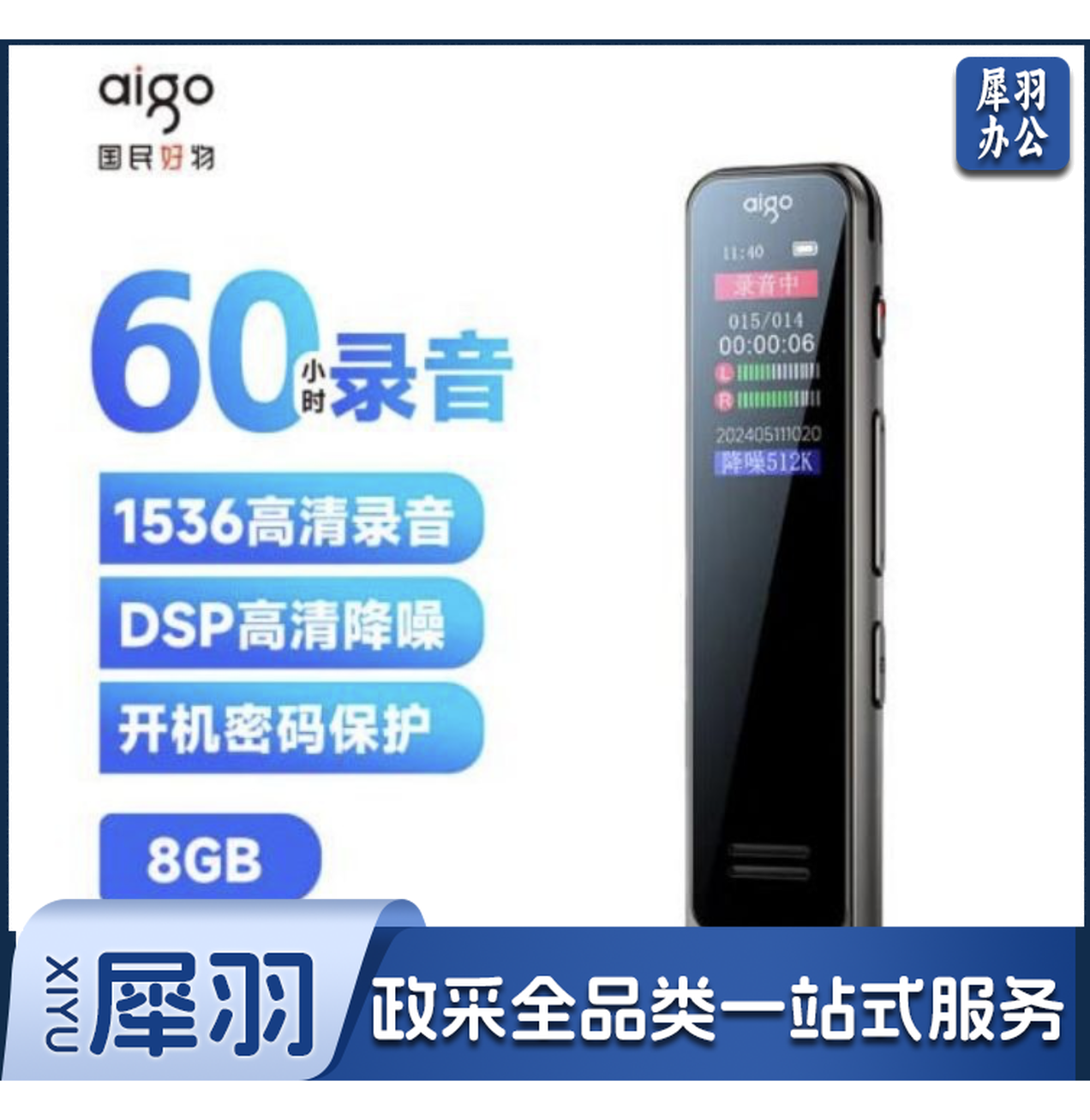 爱国者 aigo录音笔R3315C 64G一键录音专业普及型高清降噪 学习培训商务会议采访 录音器 MP3播放 黑色