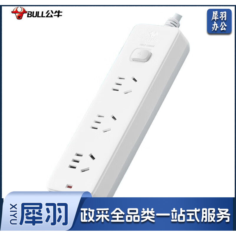 公牛(BULL) GN-212 新国标延长线插座 插线板/插排/排插/接线板/拖线板 3位总控全长10米