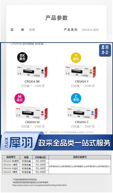 佳能(Canon)硒鼓CRG-416 C青色(适用MF8080Cw/MF8050Cn)