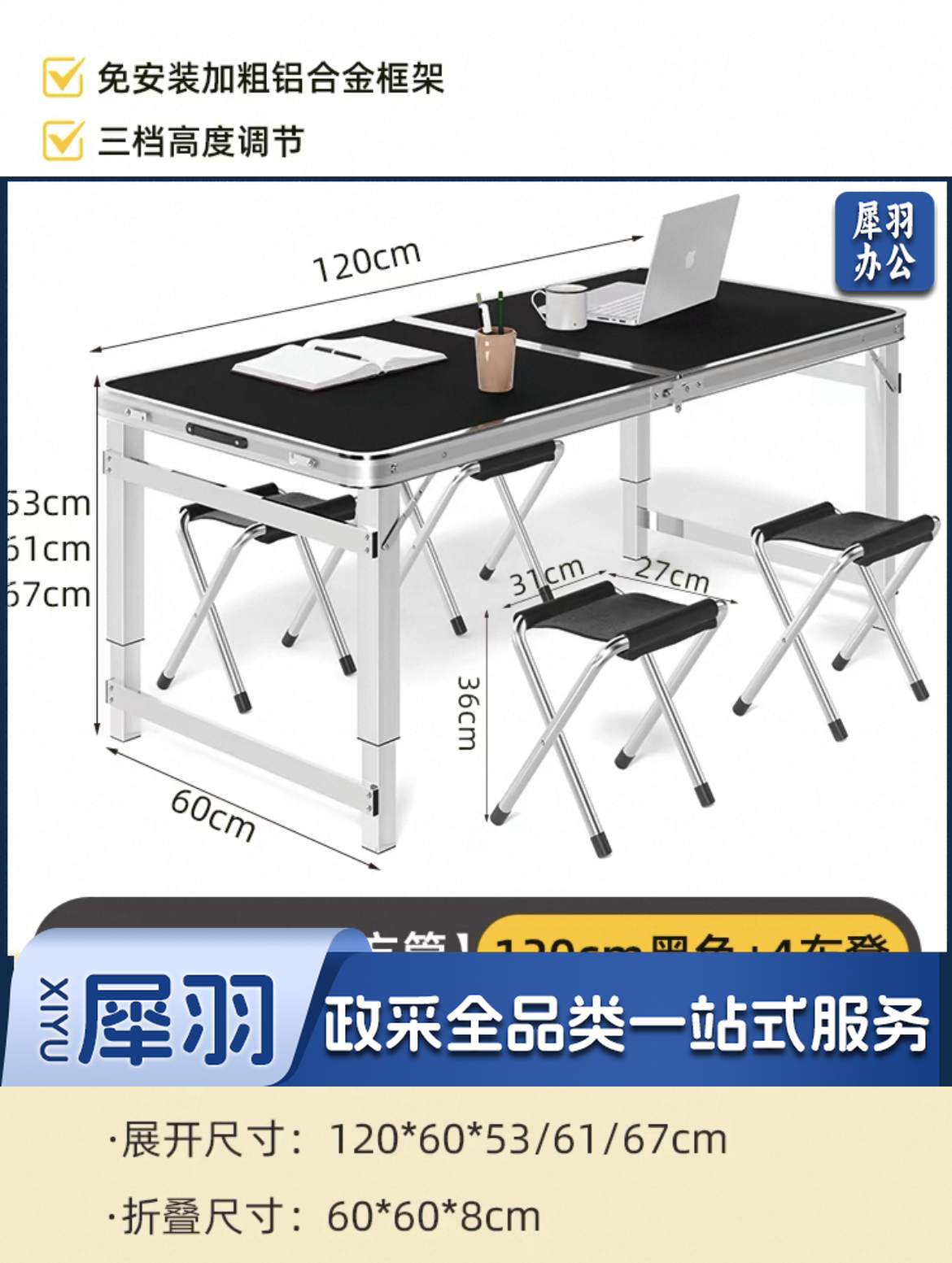 户外 便携式折 叠 桌 "(1张桌 子 4个布凳 )"