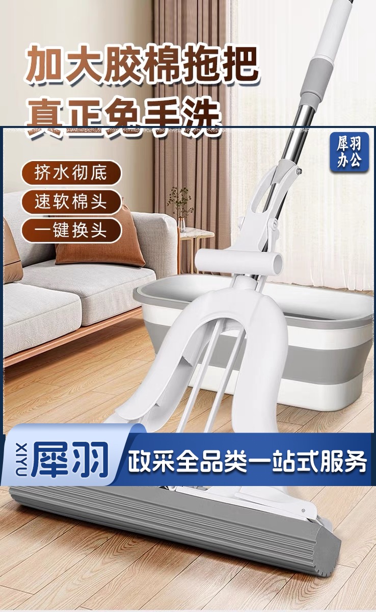 38cm 胶棉拖把魔术对折挤水大号家用吸水海绵拖把免手洗拖地神器