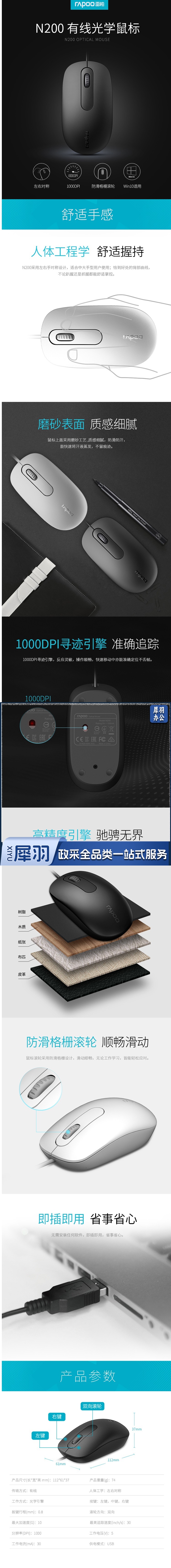 雷柏 鼠标(Rapoo)鼠标 N200 有线鼠标 黑色鼠标 办公鼠标 小型鼠标 高品质鼠标 性价比鼠标 有线鼠标 黑色鼠标 办公鼠标 黑色