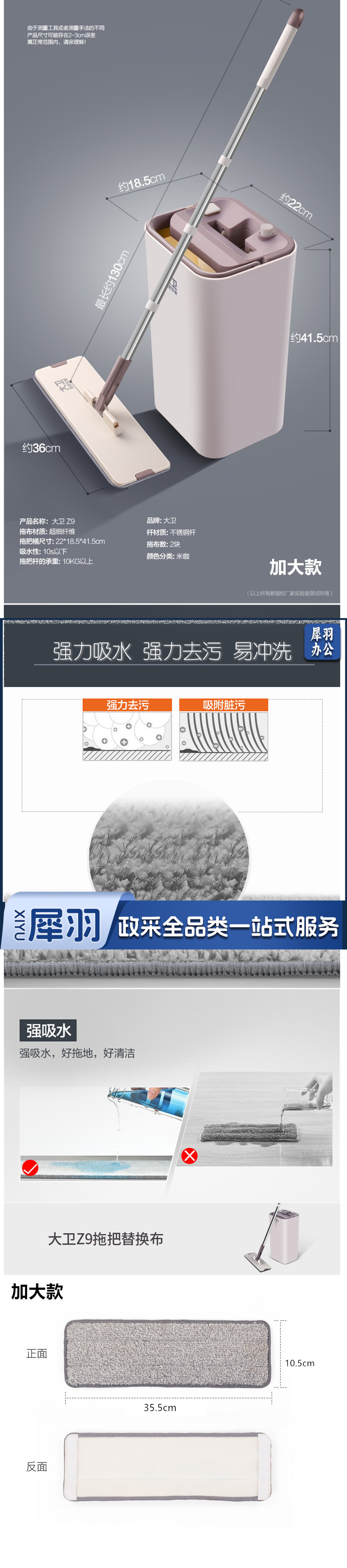 大卫 拖把清洁工具墩布干湿两用加大Z9拖把加大款(共2个布)