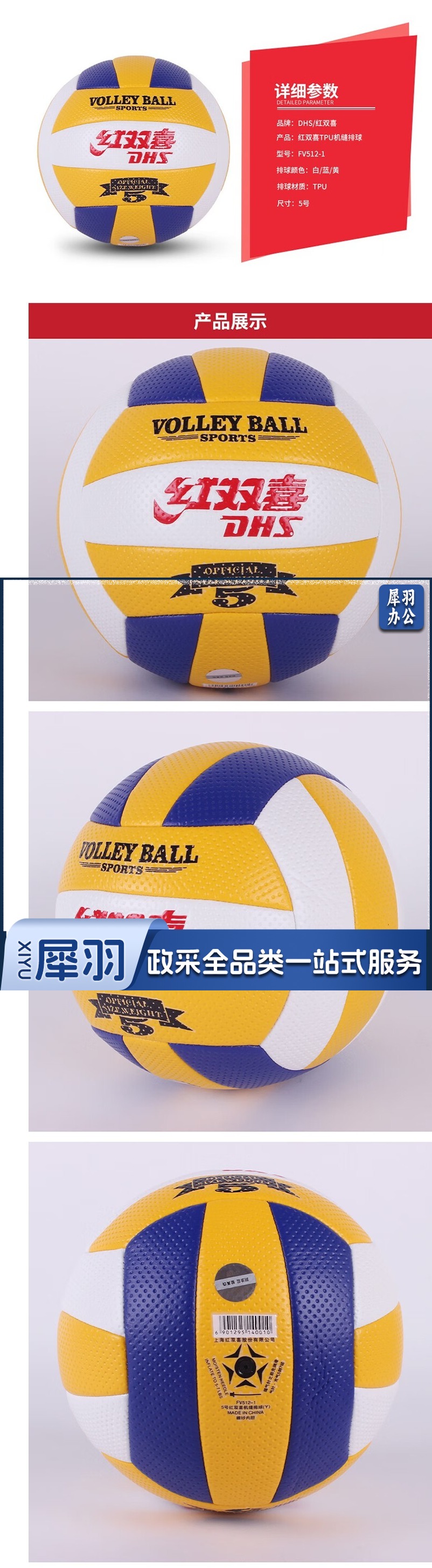 红双喜排球(DHS) 室内外排球成人排球儿童排球比赛训练FV512TPU机缝排球(黄)