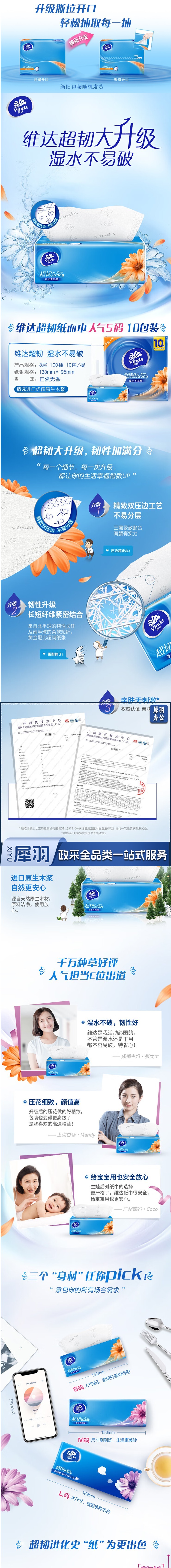维达抽纸(Vinda)抽纸 超韧3层抽纸 100抽*10包S码 抽纸湿水不易破抽纸 卫生纸 纸巾 餐巾纸抽纸
