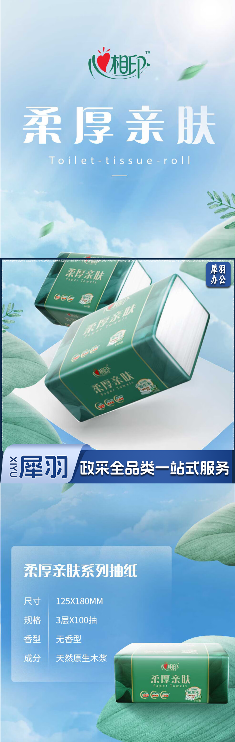 心相印卫生纸DT100 卫生纸柔厚卫生纸三层卫生纸 亲肤卫生纸 3包*6提(100抽/包)