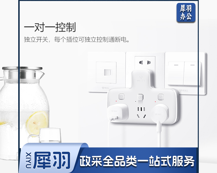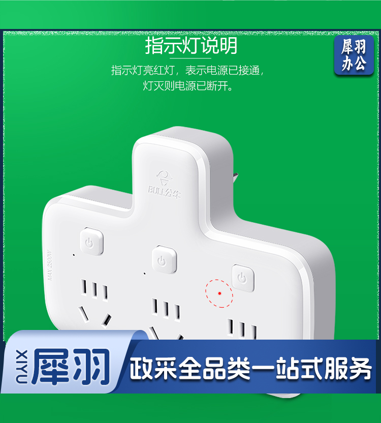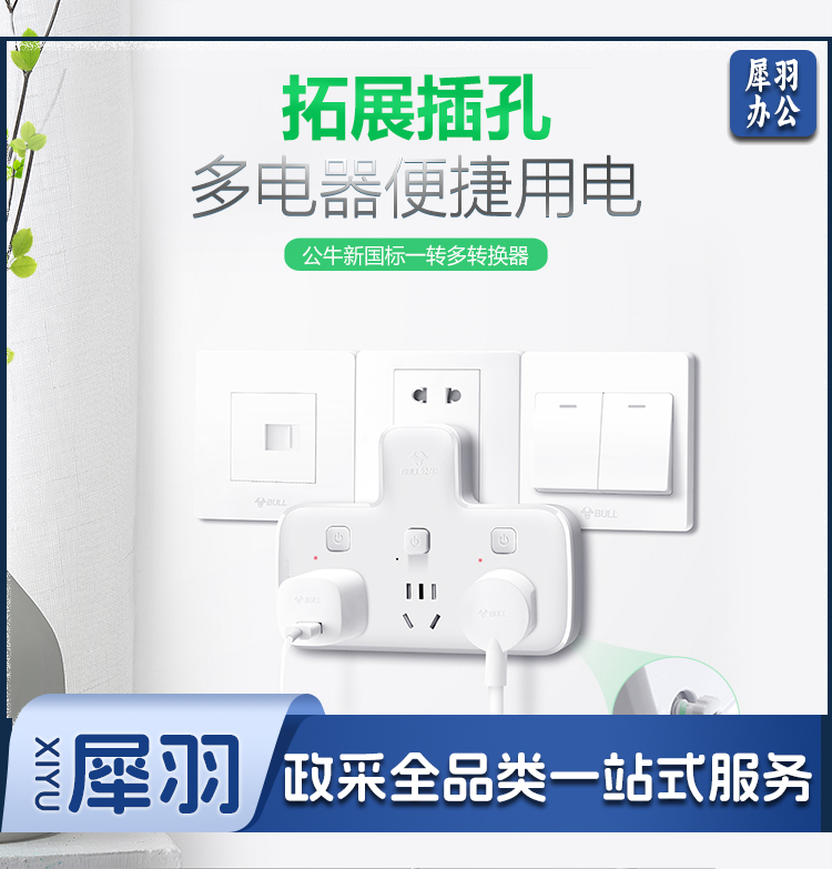 公牛(BULL)转换插头/品字形一转三插座/无线转换插座/电源转换器 适用卧室、厨房 3位分控插座 GN-96033 hysm-230512090102