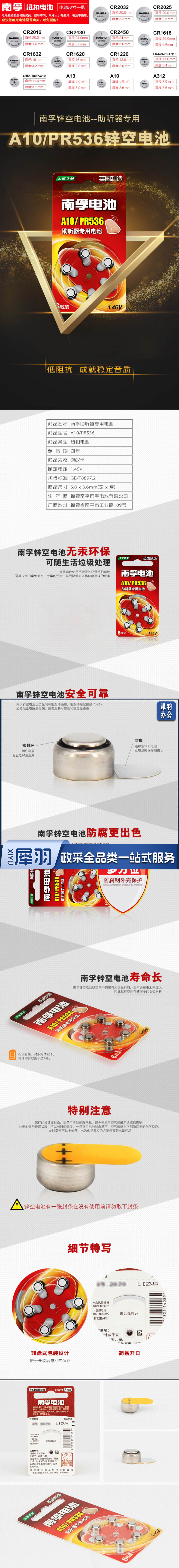 南孚(NANFU) A10/PR536纽扣电池 锌空电池6粒 助听器电池 hysm-230512085820
