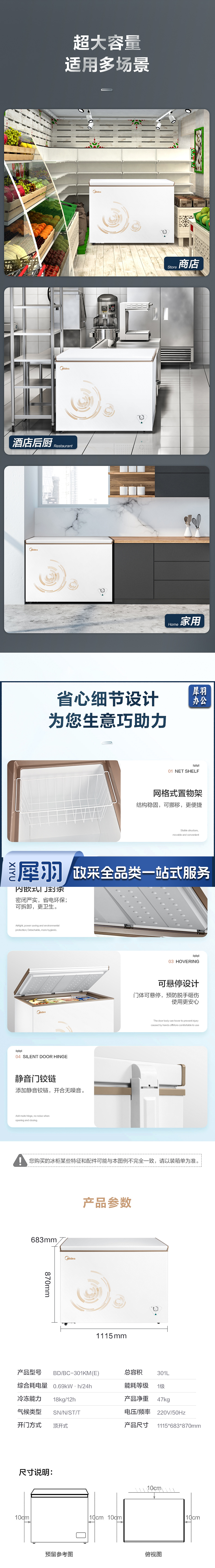 美的(Midea)BD/BC-301KM(E)301升 商用卧式大冷冻冰柜 冷藏冷冻转换冷柜 hysm-240924090246