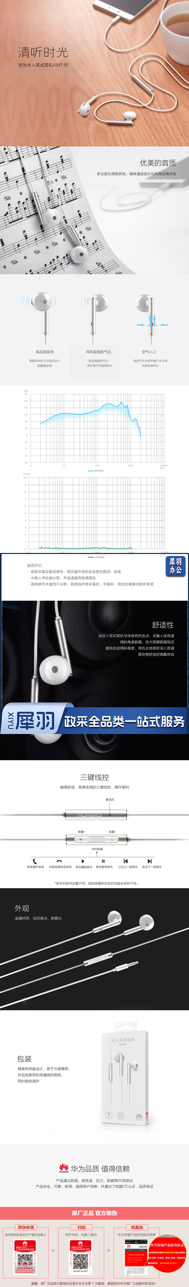 华为(HUAWEI) AM116 原装耳机/半入耳式耳机/三键线控/带麦克风/原装手机耳机 单位:对 hysm-230413090455