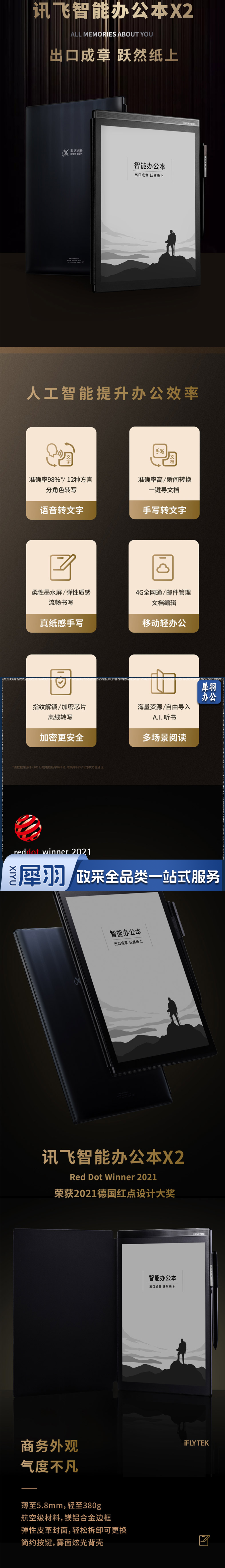 科大讯飞 X2 10.3英寸电子书阅读器 墨水屏手写板 手写语音转文字(主机+保护套) hysm-240906092948