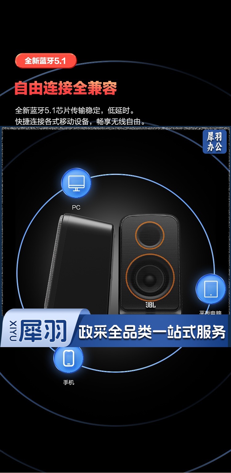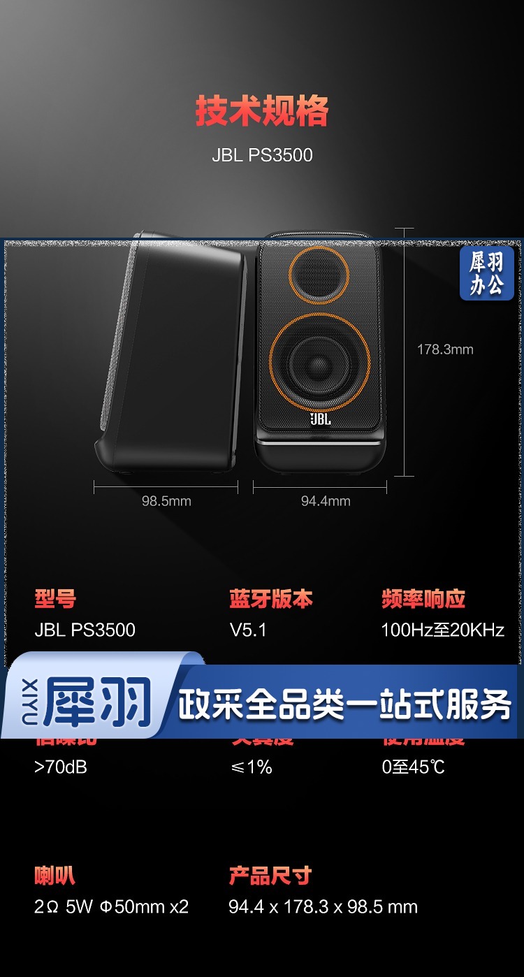 JBL PS3500 无线蓝牙音箱 电脑多媒体音箱/音响 2.0桌面音箱 低音炮 台式机手机音响 黑色