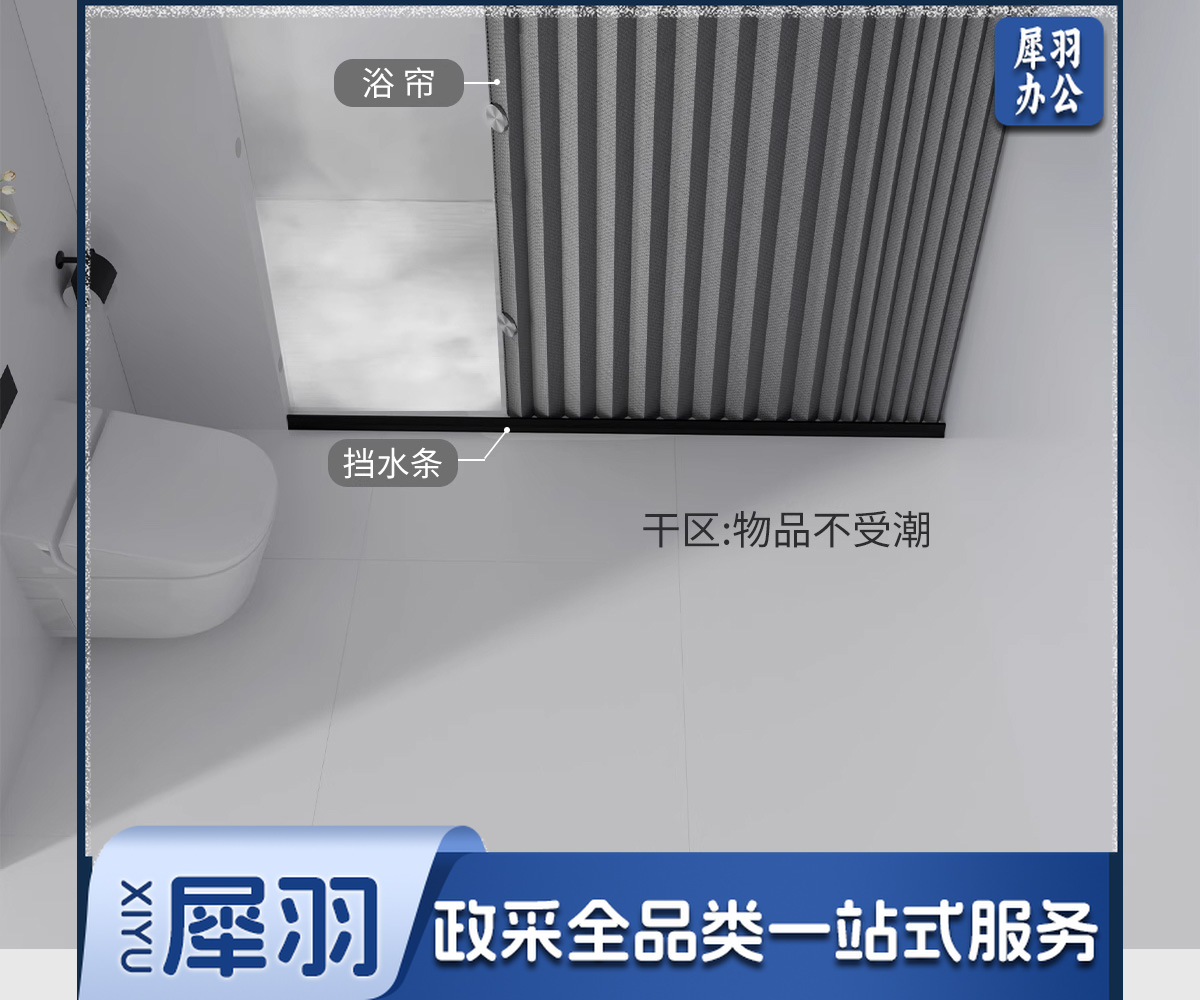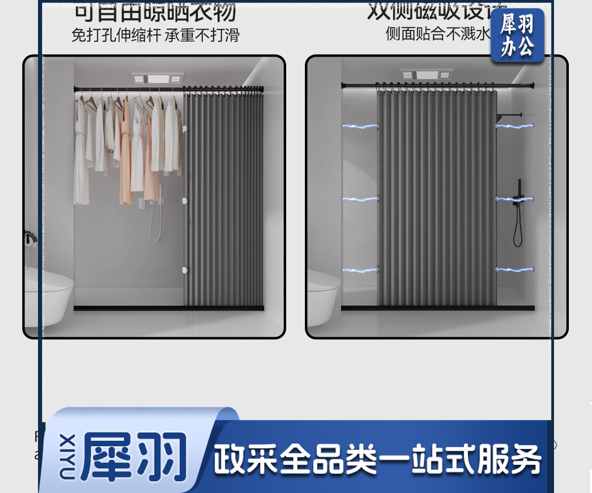 浴室防水防霉帘卫生间专用隔断帘干湿分离浴帘洗澡淋浴磁吸折叠帘【适用墙宽80-100】帘高180cm/230g双侧磁吸:中灰色【单帘】