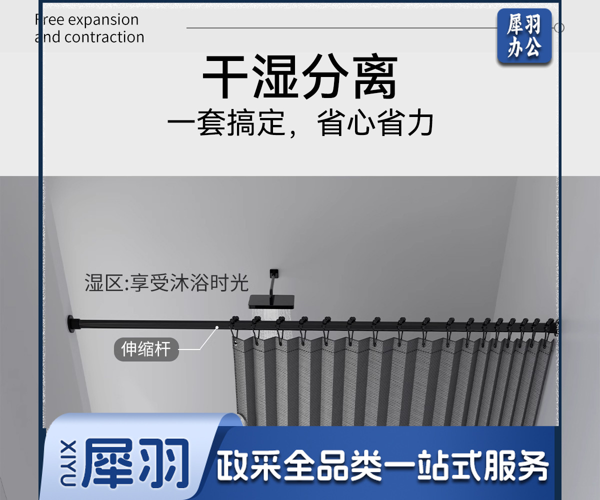 浴室防水防霉帘卫生间专用隔断帘干湿分离浴帘洗澡淋浴磁吸折叠帘【适用墙宽200-220】帘高200cm230g双侧磁吸:静谧蓝【帘+伸缩杆】