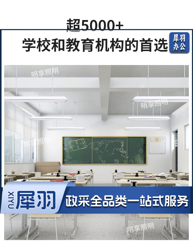 国标教室灯护眼防眩黑板灯全光谱led长条灯学校教室专用照明吊灯明享照明 36-40W铝框款【莱福德驱动】教室护眼灯【伸缩吊杆】