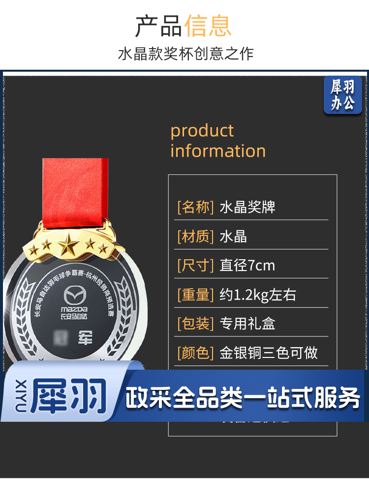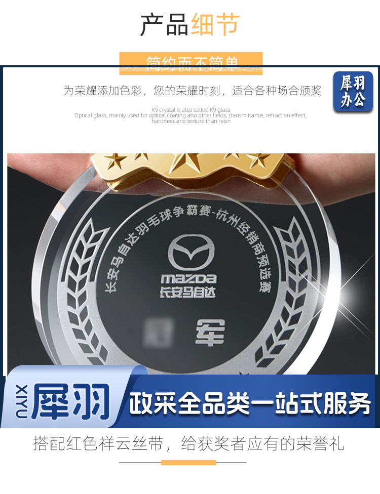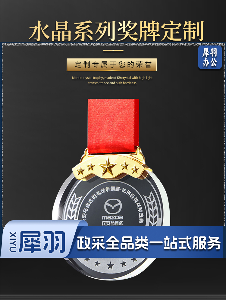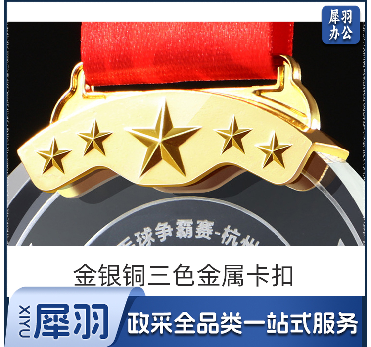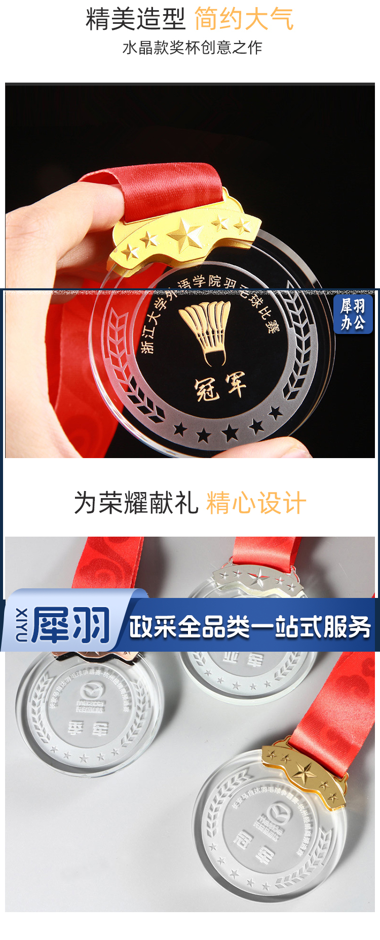水晶奖牌定制定做学生比赛学校奖品运动会挂脖子上的奖牌儿童水晶奖章学校幼儿园毕业纪念品直径7CM
