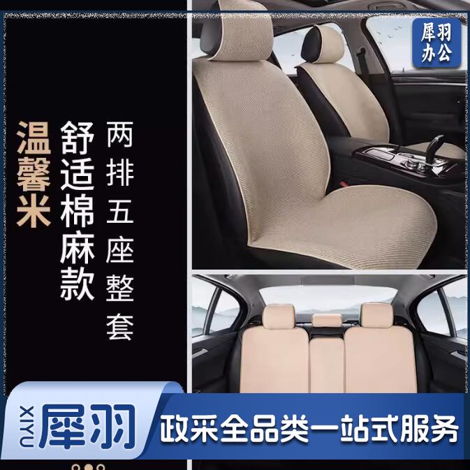 新款汽车坐垫四季通用粗麻款米色整套五座