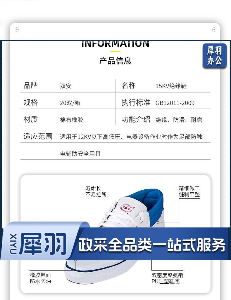 双安15kv安全鞋 绝缘鞋电工鞋夏季劳保鞋15KV安全防护鞋电工鞋 白色 42