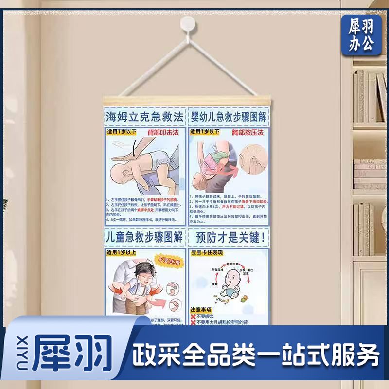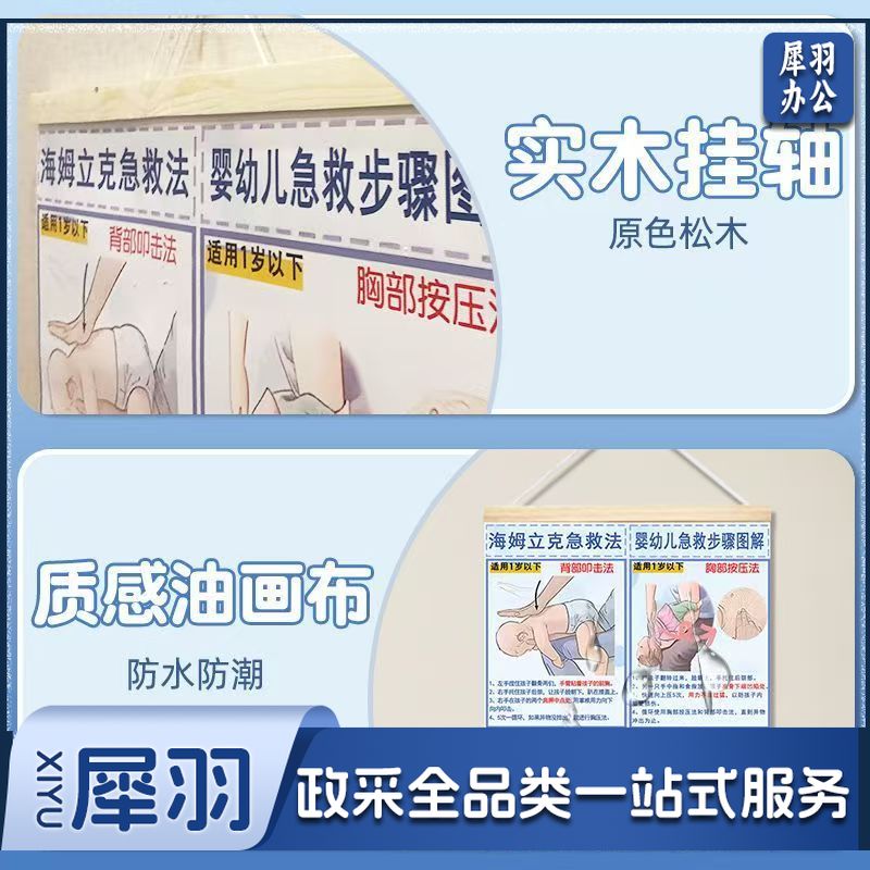 海姆立克法 挂图 30*40cm实木挂轴+ 油画布