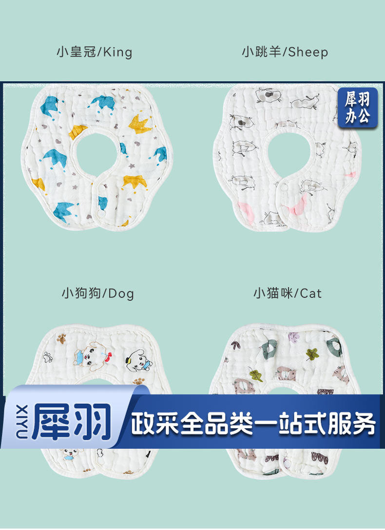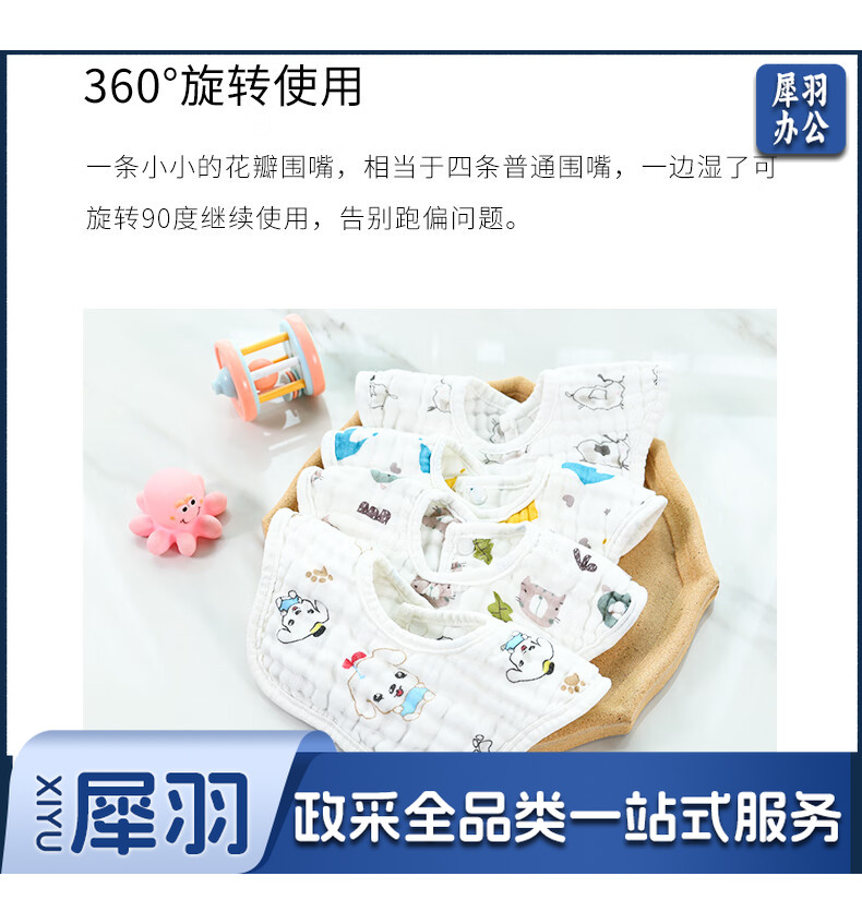 A类纯棉8层围嘴4条装婴儿纱布口水巾围兜宝宝360度旋转吸水饭兜