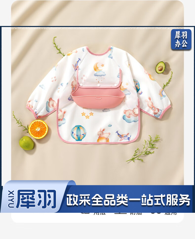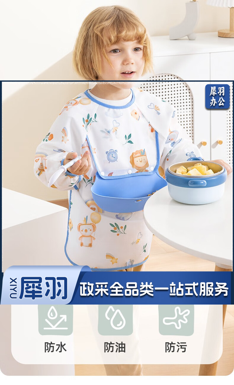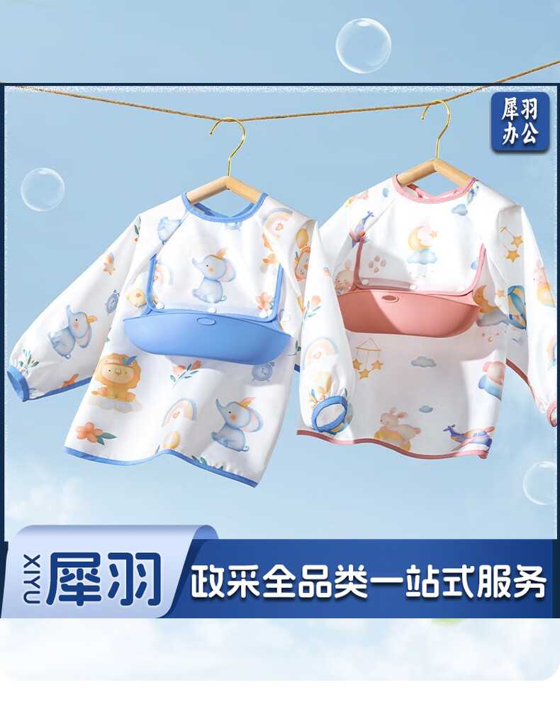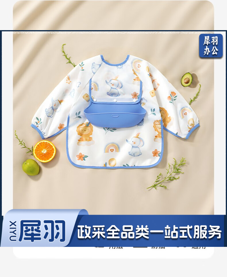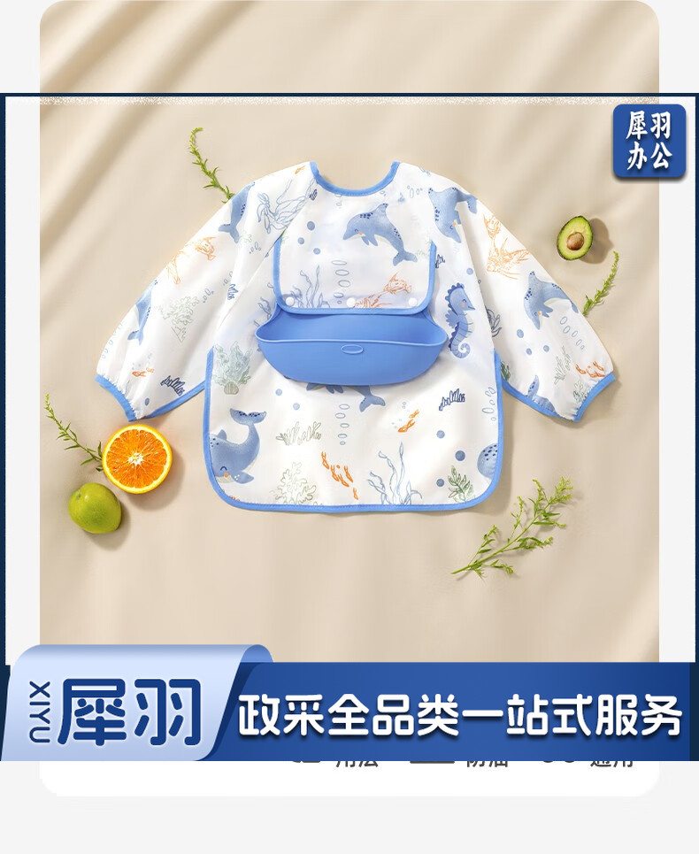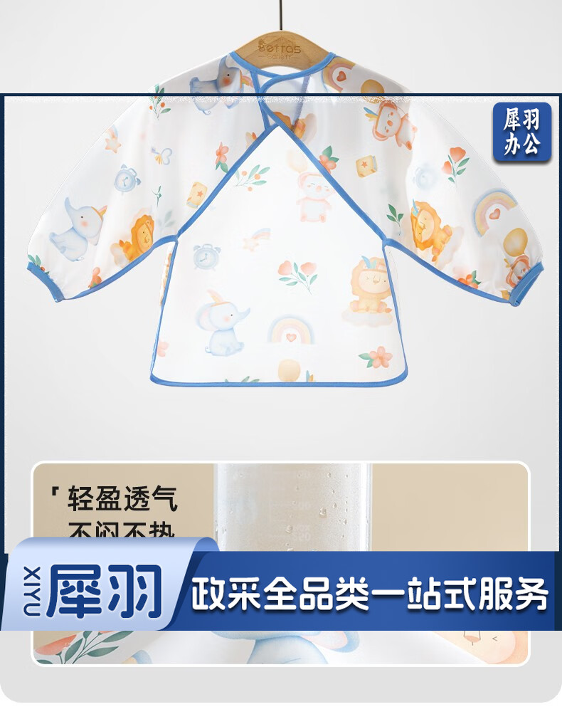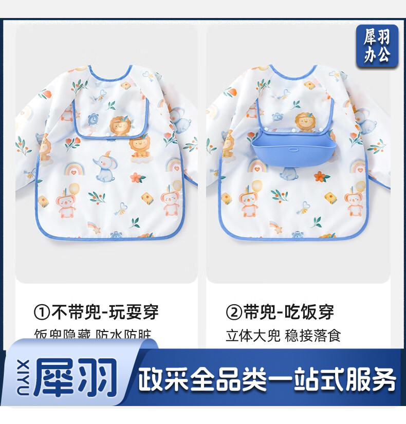 婴儿吃饭围兜宝宝食饭兜防水防脏罩衣儿童辅食幼儿园反穿衣 海之微笑【可拆卸3D立体兜】 80码(0-1岁 适合身高70-80cm)-cpy6931